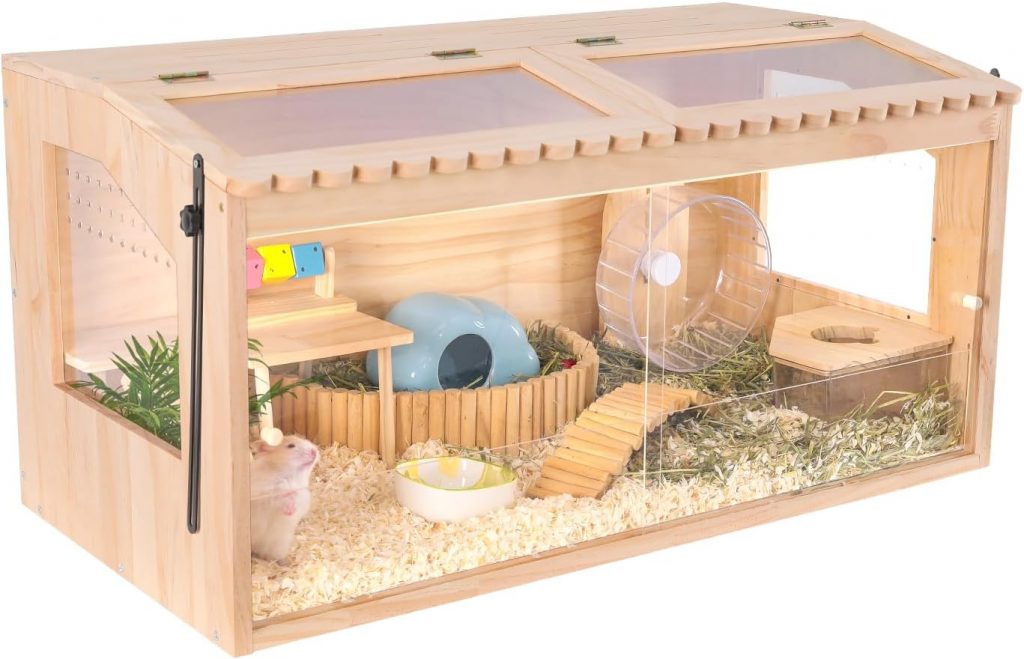 Hamsters run in their wheel for many hours, and the right-size wheel requires enough height. They also need a deep bedding for burrowing.